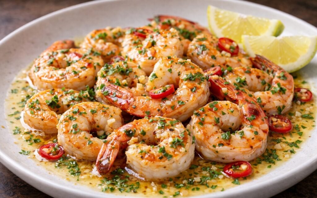 Spicy, zesty shrimp with bright citrus and heat—ready in minutes. This quick-seared seafood dish brings restaurant-quality flavor to your table with bold lime, fresh chilies, and perfectly caramelized shrimp. A vibrant weeknight dinner that’s as impressive as it is easy.